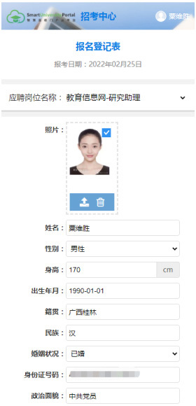 此外,如果考生增參加過以往的招考項目,系統(tǒng)會自動復(fù)用之前的報名表信息,考生只需更新過期信息即可,極大減少了填寫工作的重復(fù)性。
