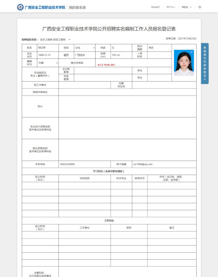 事業(yè)單位招考的報名表通常具有特定格式,與常規(guī)招聘簡歷差異顯著??紤]到招考負(fù)責(zé)人和相關(guān)領(lǐng)導(dǎo)已習(xí)慣紙質(zhì)報名表的樣式,我們特別設(shè)計了高度仿真的報名表填寫和查看界面,確保用戶體驗的一致性。