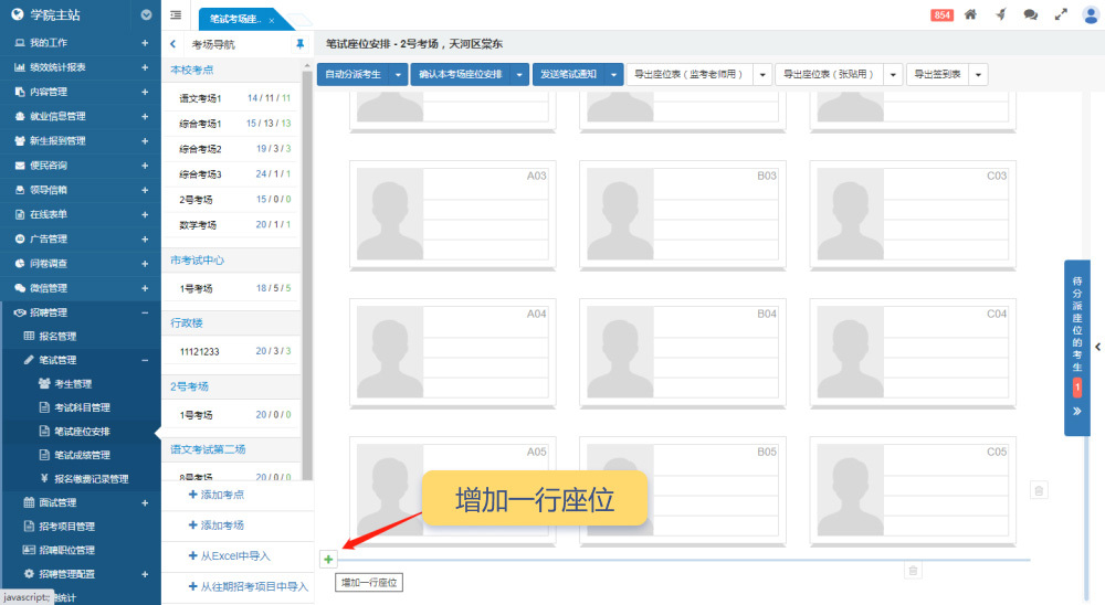 考點和考場的管理功能集成在“筆試座位安排”的考場導(dǎo)航中欄,無需單獨的管理菜單。