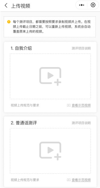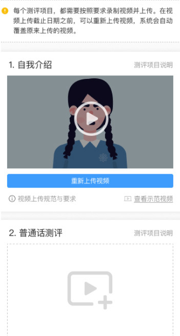 考生的報名通過審核后,進入視頻上傳階段,考生需要在規(guī)定時間內(nèi)按照要求上傳視頻。