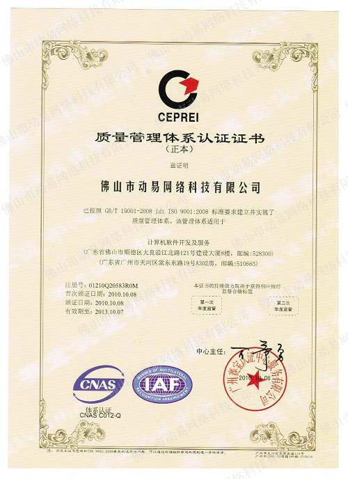 動易順利通過ISO9001:2008質(zhì)量體系認(rèn)證