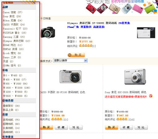 看看以上兩幅圖中的紅色框框部分,怎么樣,是不是恍然大悟???我們?nèi)ゲ簧俅笮?/span>B2C網(wǎng)站的時(shí)候應(yīng)該都使用過(guò)這個(gè)方便的篩選功能吧?之前也有一些用戶在論壇上提交過(guò)這個(gè)功能的開(kāi)發(fā)建議。在BizIdea? 3.0中,大家就可以親自體驗(yàn)到這個(gè)商品多屬性篩選功能了。那今天,我們就先來(lái)一睹為快吧!